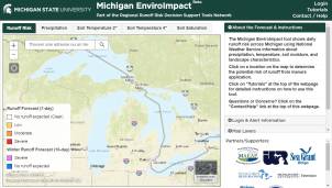 Michigan State University and Michigan Sea Grant Extension and other partners produced the MSU EnviroImpact, an online decision-support tool providing users with regularly updated forecasts for surface runoff risk.