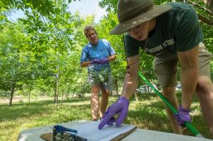 Michigan Sea Grant coordinated efforts to team up students with scientists to monitor Pitcher’s thistle and effectiveness of treatments to reduce invasive Phragmites on Big Charity Island.