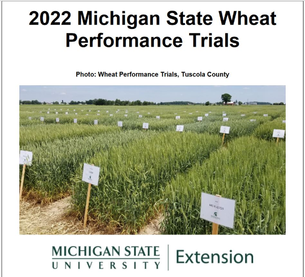The 2022 State Wheat Performance Trial entries were planted in 7 counties: Isabella, Hillman, Ingham, Huron, Montcalm, Sanilac and Tuscola.