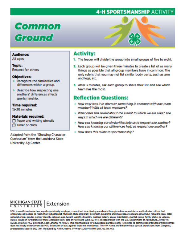 - Describe how respecting one anothers’ differences affects sportsmanship.