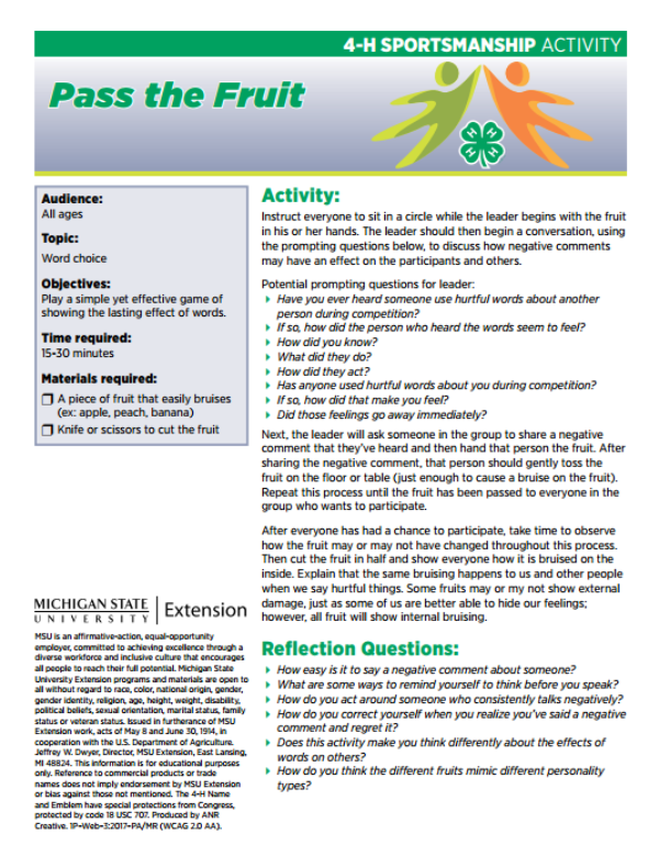 4-H Sportsmanship Activity: Pass the Fruit