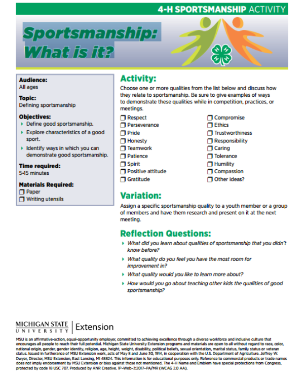 4-H Sportsmanship Activity: Sportsmanship - What is it?