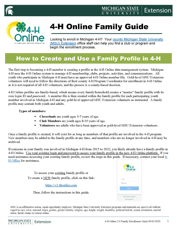 This guide will walk families through how to enroll in Cheboygan County's 4H Online. If you have further questions, please contact Jessica at woiders9@msu.edu