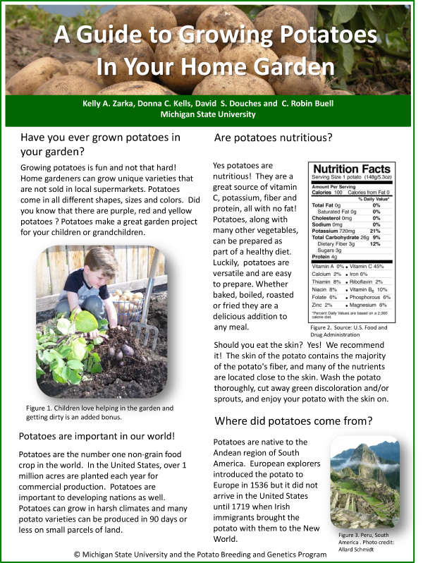 Have you ever grown potatoes in your garden? Growing potatoes is fun and not that hard! Home gardeners can grow unique varieties that are not sold in local supermarkets. Potatoes come in all different shapes, sizes and colors. Did you know that there are purple, red and yellow potatoes? Potatoes make a great garden project for your children or grandchildren.
