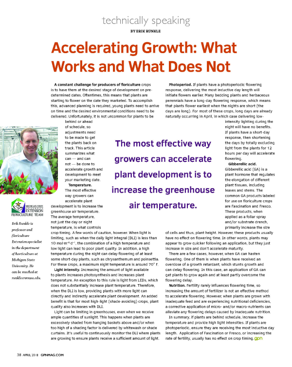 The most effective way growers can accelerate plant development is to increase the greenhouse air temperature.