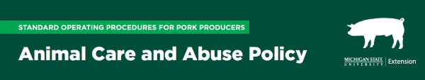 A zero tolerance policy for any willful acts of abuse. Acts of these kind are unacceptable and will not be tolerated (National Pork Board, 2015). These include acts that fall outside of the normally accepted production practices for swine farms or that intentionally cause pain and suffering to an animal. Examples of mistreatment include: