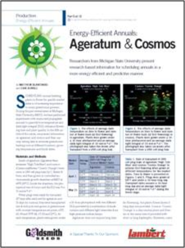Researchers from Michigan State University present research-based information for scheduling ageratum and cosmos in an energy-efficient and predictive manner. Part 5 of a 12-part series.