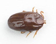 An engorged female is fertilized by a male while still on the dog. She falls off after mating and seeks a sheltered area in which to lay her 1,000-3,000 eggs. She can lay her eggs in any protected area, however, egg masses are likely to be found in above-ground crack and crevices (for example, kennel roofs) because of her behavioral tendency to crawl upward. The female dies soon after depositing eggs and depending on temperature and humidity, the eggs hatch in 19-60 days. The tiny light brown larvae (“seed tick”) have 6 legs and attach to a dog at the first opportunity. A larva can survive for 8 months without a bloodmeal. After larvae attach to a host they engorge themselves for 3-9 days, changing from a flattened to a globular shape, and light brown to bluish-gray color. They leave the host, seek a sheltered area, and molt in 6-23 days to become an 8-legged reddish-brown nymph. Nymphs can survive for extended periods without food or water.