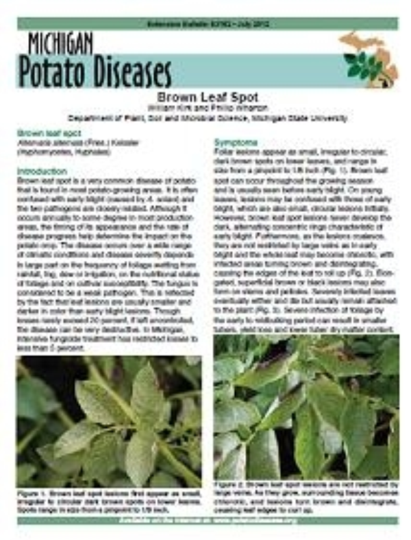 This publication is part of a new series of bulletins on potato diseases in Michigan. Funding for this publication was provided by Project GREEEN, MSU Extension, Michigan State University AgBioResearch and the Michigan Potato Industry Commission.