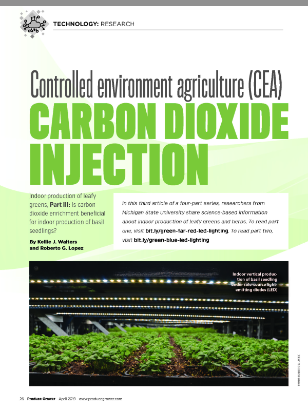 Indoor production of leafy greens, Part 3 of 4: Is carbon dioxide enrichment beneficial for indoor production of basil seedlings?