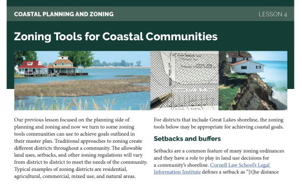 This lesson is one of a 5-part e-mail series on Great Lakes coastal zoning and planning. Register for the complete series online.