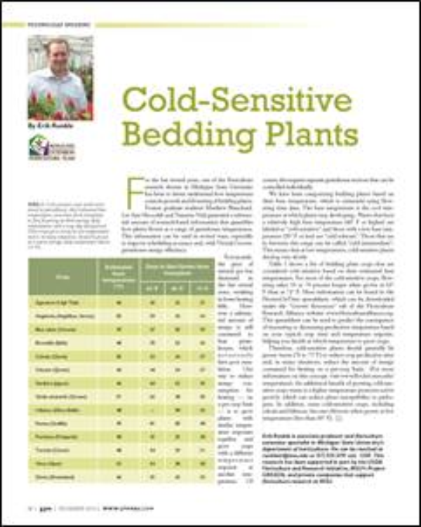 Bedding plants that stop developing at a relatively high temperature can be labeled as cold-sensitive plants. This categorization is based on estimates of base temperatures derived from research data primarily generated at Michigan State University.