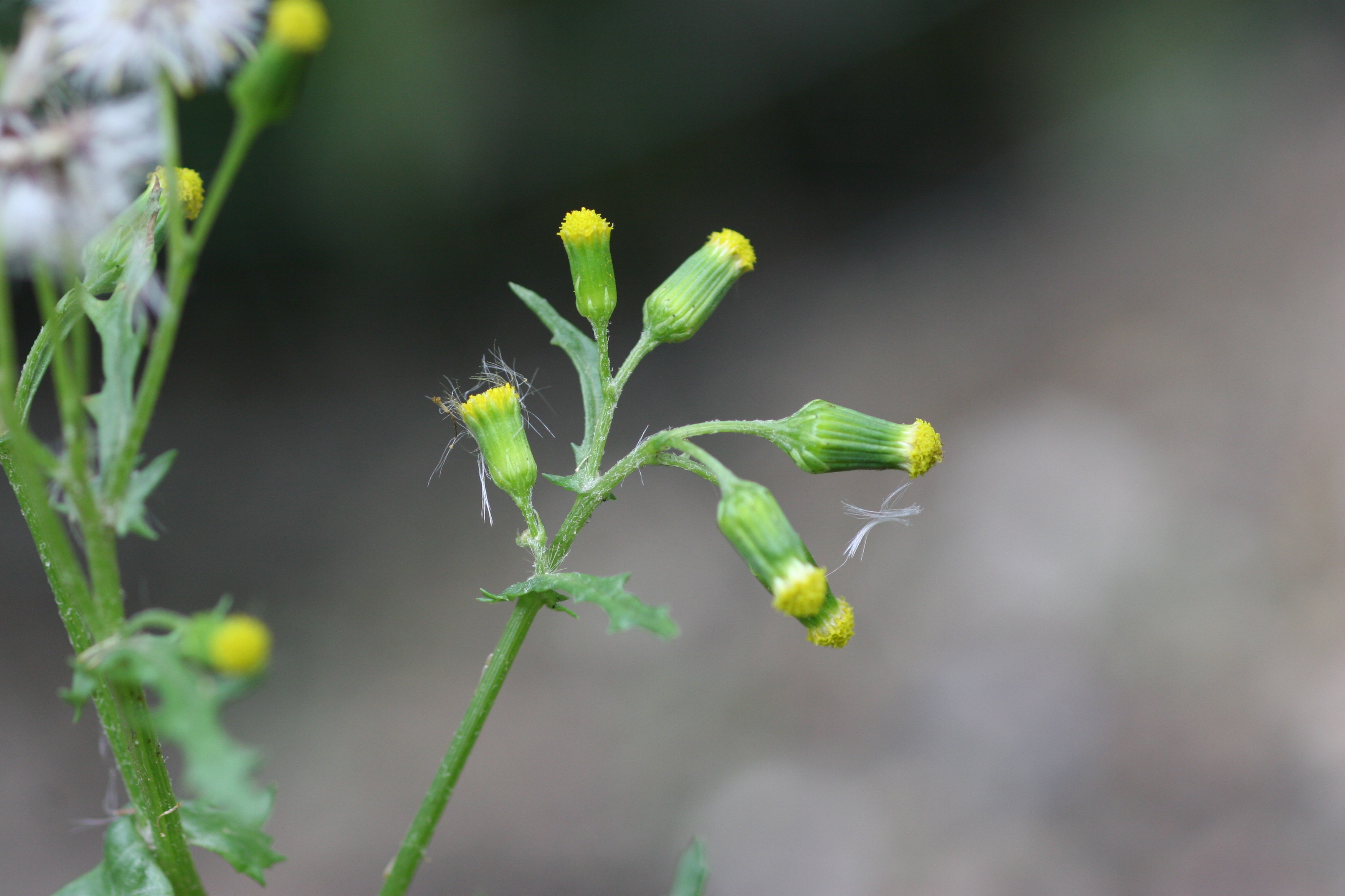 Numerous yellow, cylinder- to cone-shaped flower heads are produced in clusters at the stem ends. The seed is enclosed in a single-seeded, wind-disseminated fruit that forms in a white, approximately 0.5-inch-wide puffball collection.