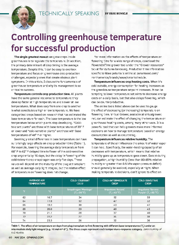 This article discusses the fundamentals of greenhouse temperature and why its management is so critical to successful production of crops.