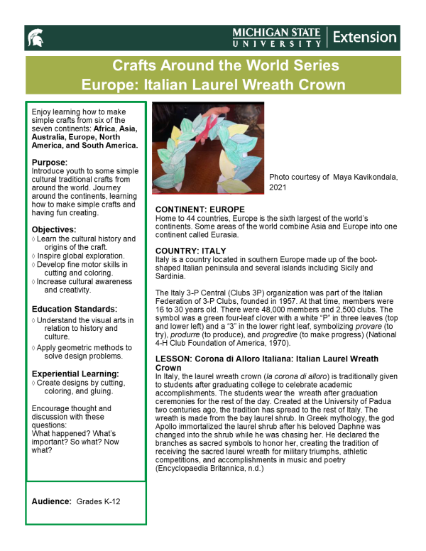 Crafts Around the World Series Europe: Italian Laurel Wreath Crown
