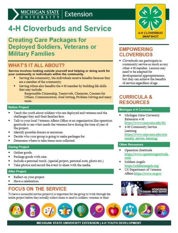 4-H Cloverbuds and Service: Creating Care Packages for Deployed Soldiers, Veterans or Military Families