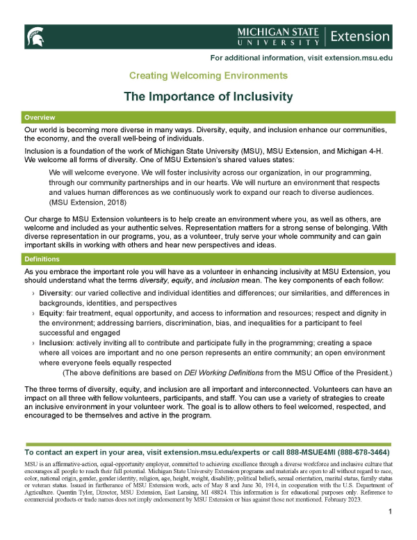 We encourage you to continue exploring methods for inclusivity in your volunteer role and invite you to review our other resources for MSU Extension volunteers.