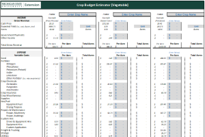 The Crop Budget Estimator for Vegetables (simple version) is a Microsoft Excel based tool built with smaller farm needs in mind. Instead of using a built-in, step-by-step process (as seen in “detailed” versions), you can directly enter your own cost estimates. Other cost comparison tools can still be used to help you determine those values, if desired. Or you can use last year’s information if you expect costs to be similar. The decision tool then provides an assessment of revenue goals, cost of production, break-evens, and financial ratios.