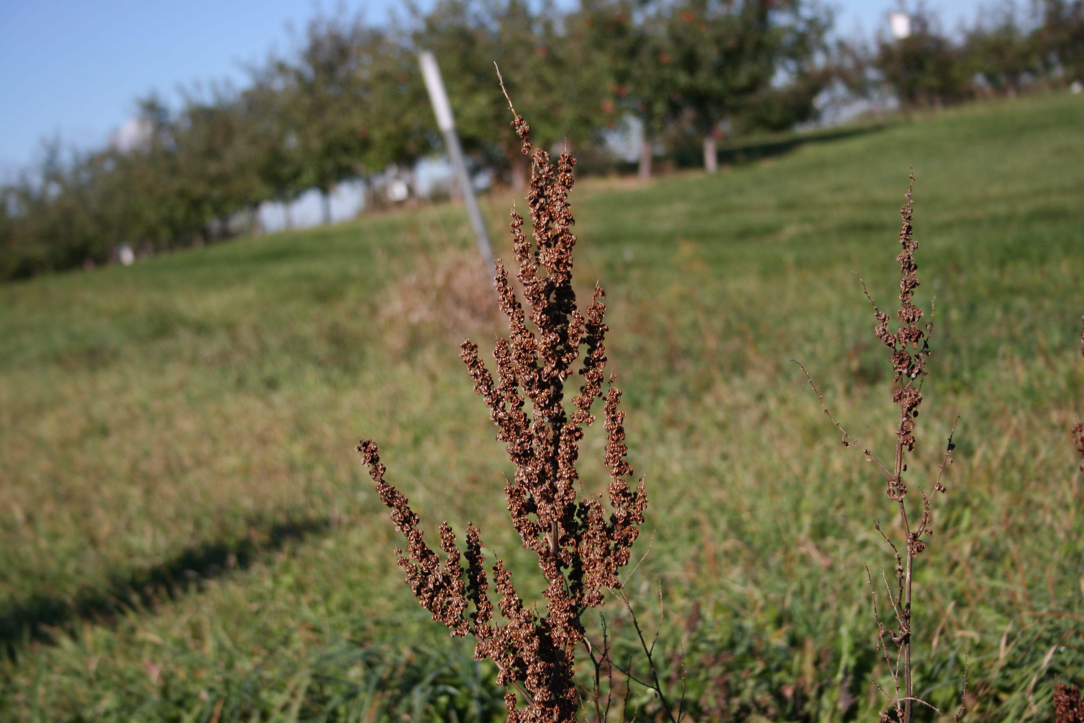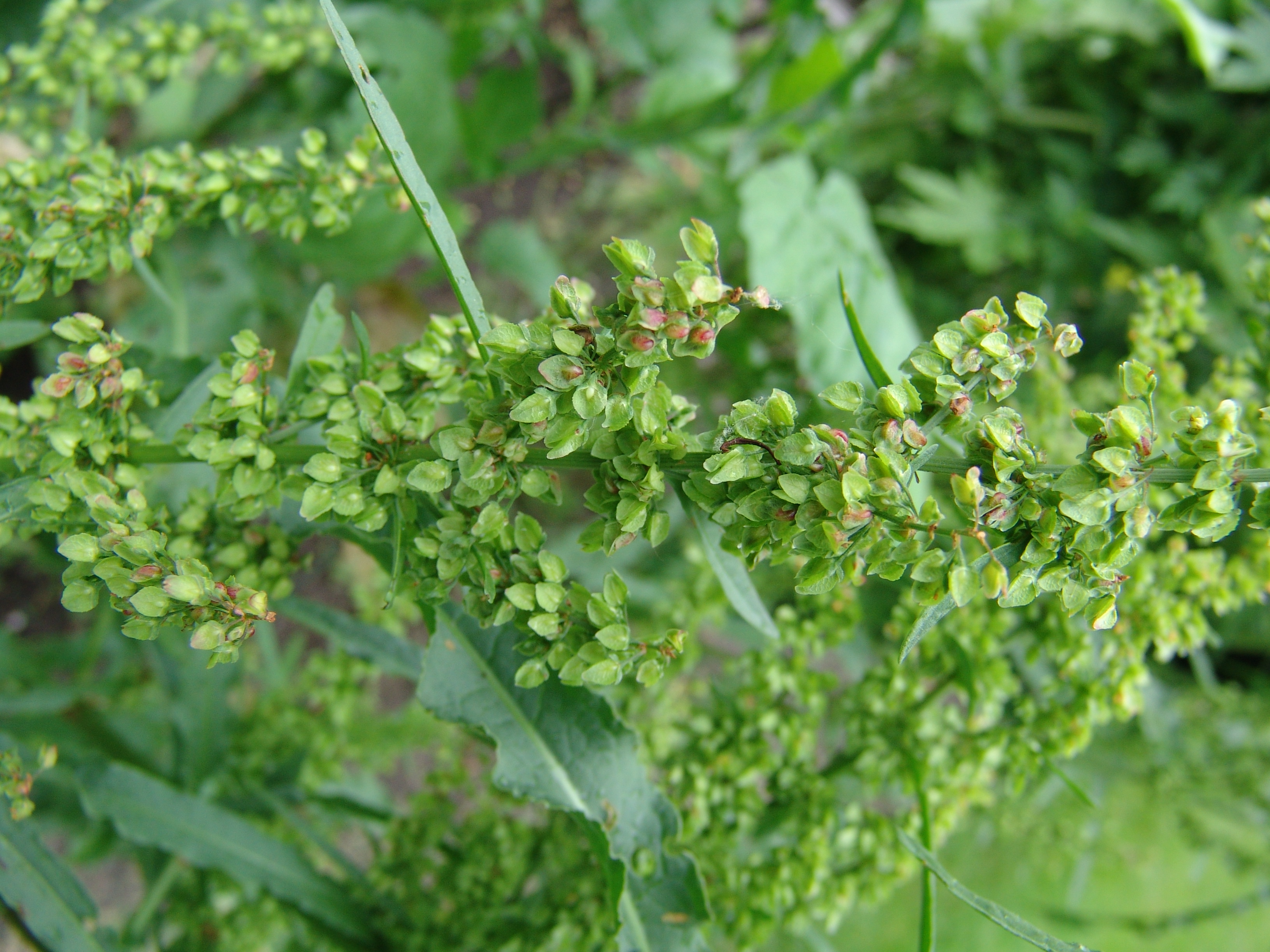 Flowers are small, usually greenish and found in clusters on the upper stems, becoming reddish brown at maturity. The seed is enclosed in a single-seeded, shiny, reddish brown, three-sided fruit.