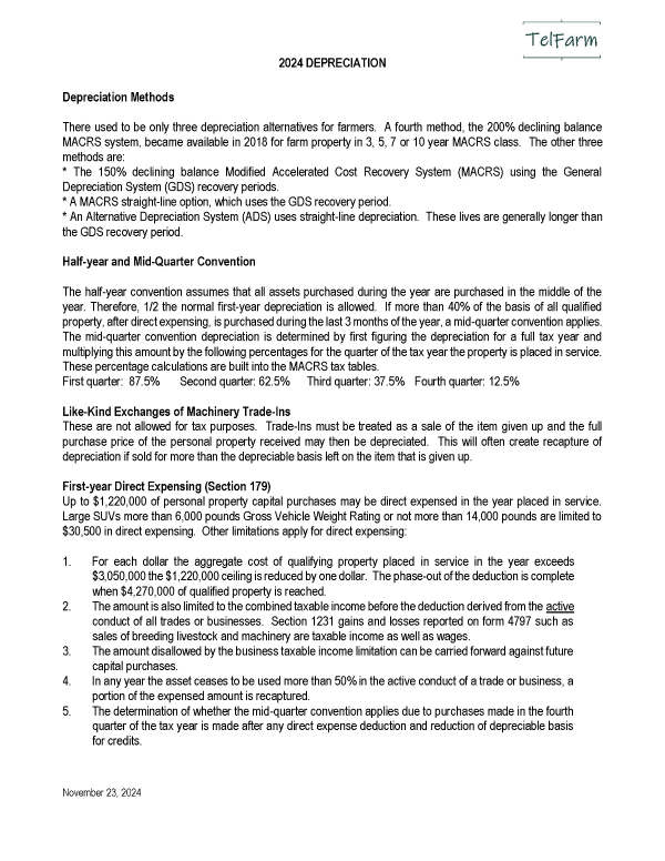 Depreciation Notes 2024