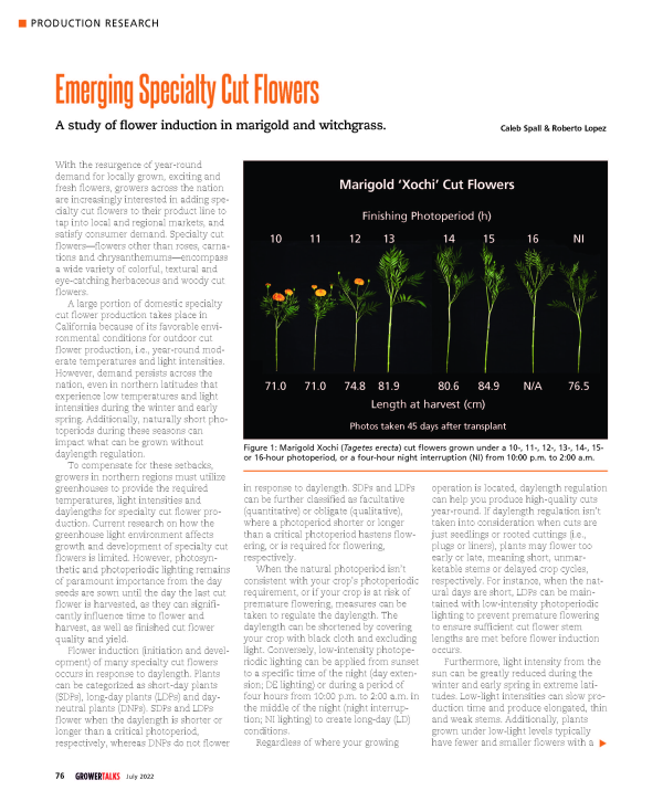 Determining if young and/or finish photoperiod influence flower induction in marigold and witchgrass.