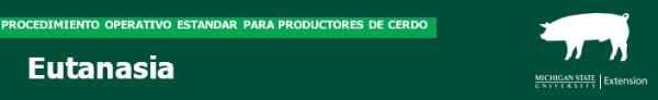 - Los procedimientos y las técnicas de eutanasia en esta granja son seleccionadas de métodos aprobados por la Asociación Americana de Veterinarios de Porcinos (AASV) y la Junta Nacional de Cerdos. Los métodos aprobados están resumidos en el folleto “Recomendaciones para el Productor sobre la Eutanasia de Cerdos en la Granja”.