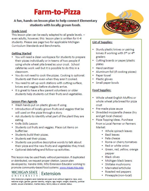Farm to Pizza Lesson Plan