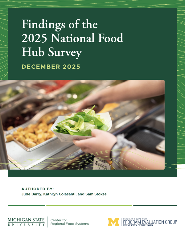 The National Food Hub Survey is a longitudinal research project conducted by Michigan State University Center for Regional Food Systems (CRFS) since 2012. The 2025 National Food Hub Survey is the sixth iteration of this survey and was conducted by CRFS in collaboration with the University of Michigan Program Evaluation Group (UM PEG).