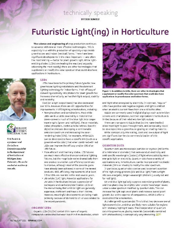 Light-emitting diodes are rapidly advancing, but there are other technologies that supplement or modify the solar spectrum that could also have applications in horticulture.