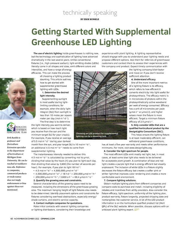 Getting started with supplemental greenhouse LED lighting