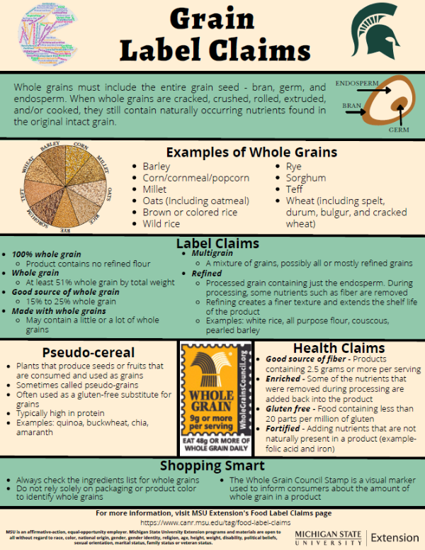 Whole grains must include the entire grain seed - bran, germ, and endosperm. When whole grains are cracked, crushed, rolled, extruded, and/or cooked, they still contain naturally occurring nutrients found in the original intact grain.
