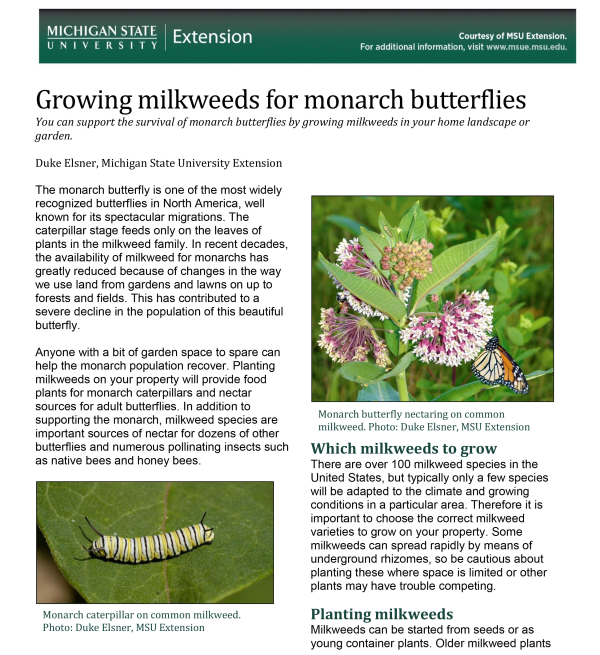Print a PDF of this article: Growing milkweeds for monarch butterflies