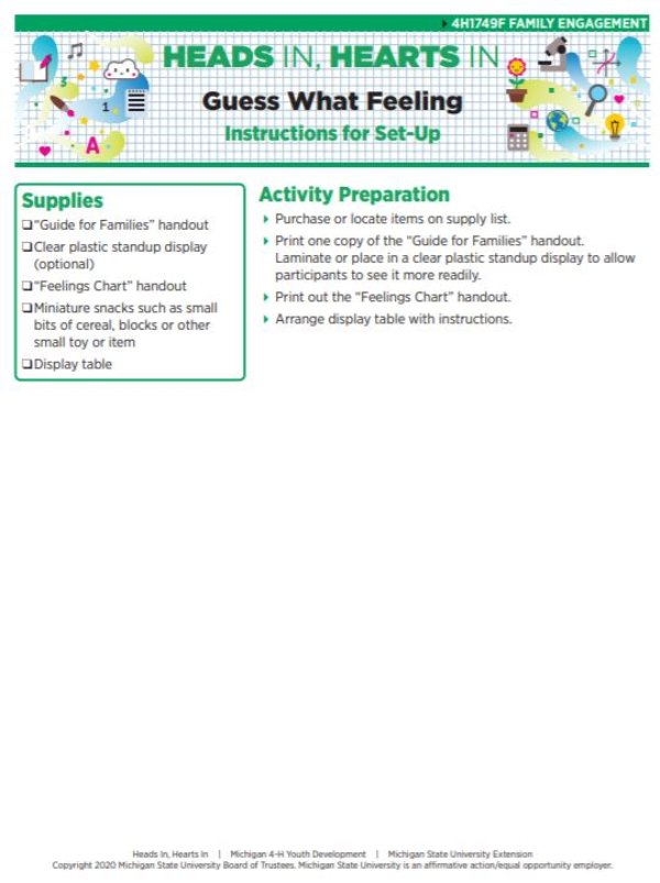 opportunity to talk about feelings with the young child and to label or name the feelings that they see. Teaching