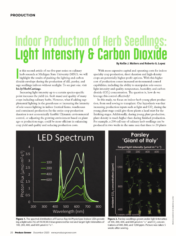 Indoor Production of Herb Seedlings: Light Intensity and Carbon Dioxide