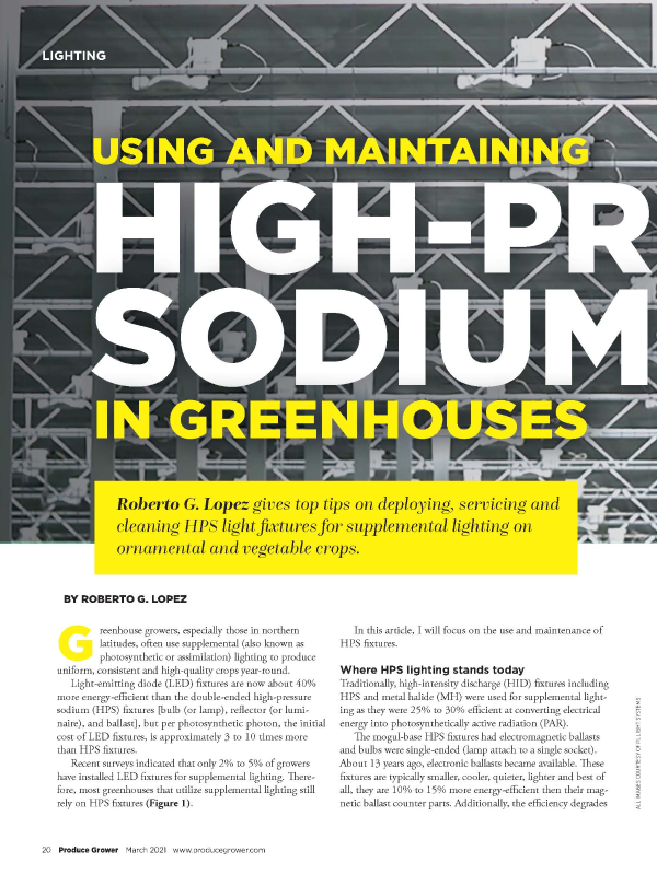 Top tips on deploying, servicing and cleaning HPS light fixtures for supplemental lighting on ornamental and vegetable crops.