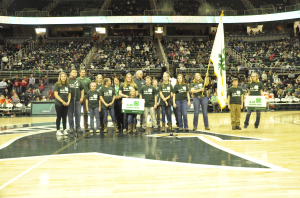 Female adult (left arrow) and eggs laid at base of honeylocust leaf bud (right arrow).