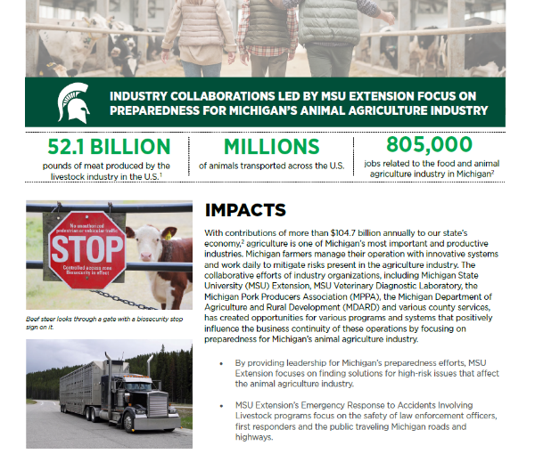 Industry Collaborations Led by MSU Extension Focus on Preparedness for Michigan's Animal Agriculture Industry