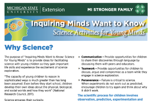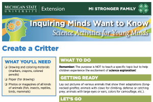 The books suggested here are both fiction and nonfiction titles focused on science inquiry. Each book provides an opportunity for children to read and increase their science literacy and offers opportunities to incorporate science concepts into other activities.