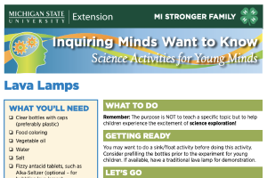 | Lava Lamp | States of matter: Mixtures sink and float, things that don't mix |