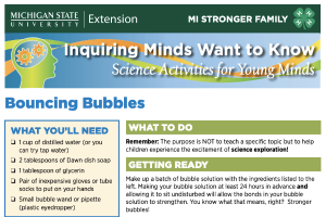 | Bouncing Bubbles | States of matter: mixtures sink and float, things that don't mix |