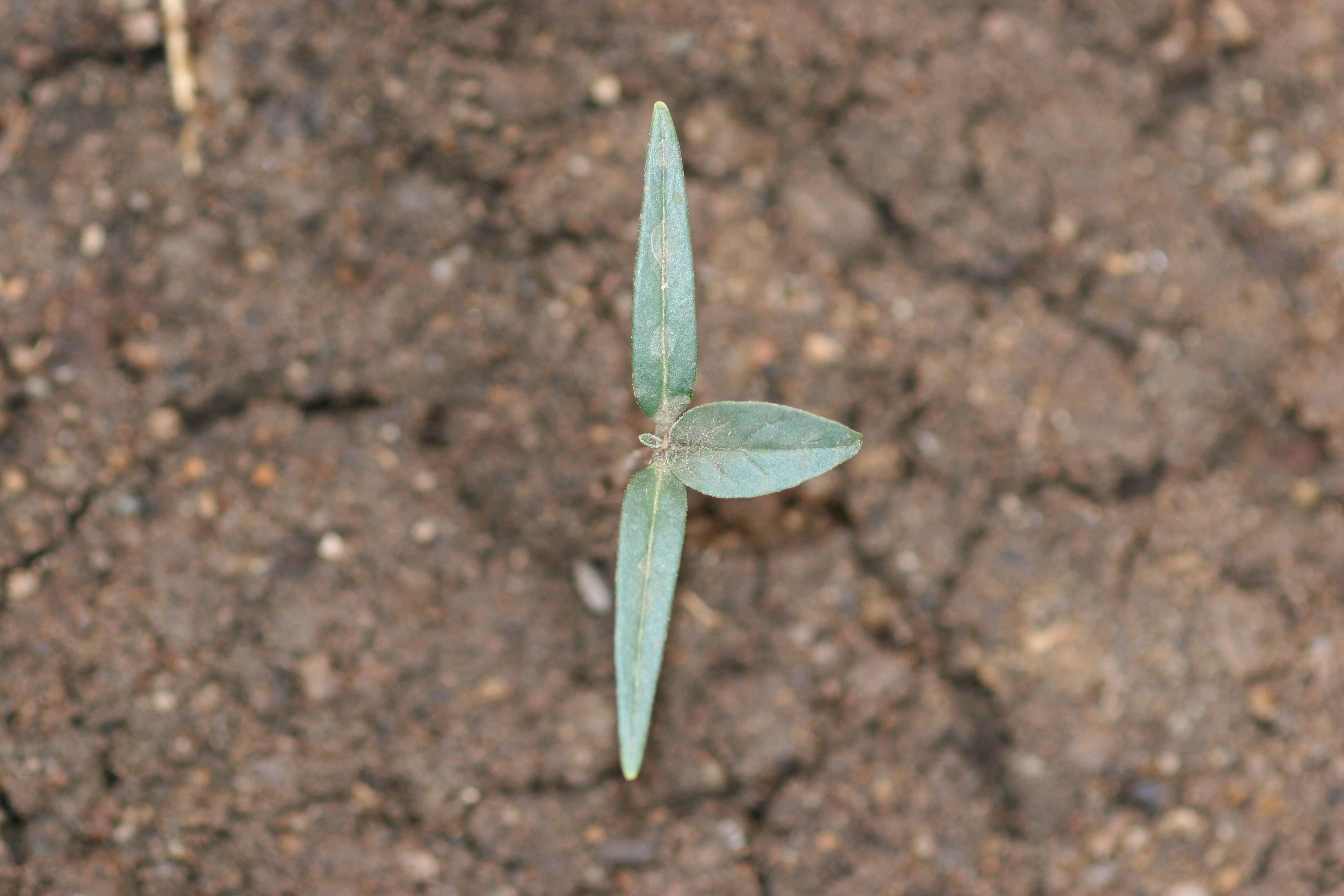 Cotyledons are long and narrow with a prominent midvein. Leaves are alternate, oval to egg-shaped, 3 to 8 inches long, smooth with long petioles. First leaves are entire; later leaves have large, coarsely and unevenly toothed margins. Damaged leaves will emit a foul odor.
