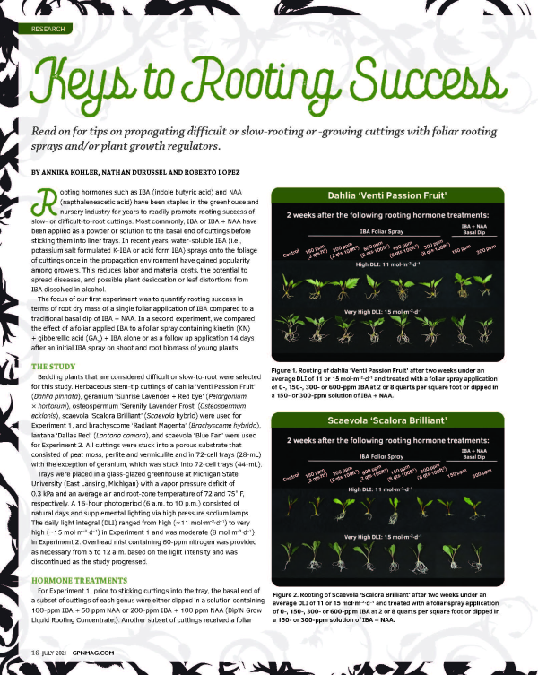 Read on for tips on propagating difficult or slow-rooting or -growing cuttings with foliar rooting sprays and/or plant growth regulators.