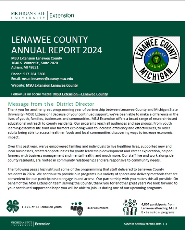 - 4,804 participants from Lenawee attending MSU Extension programs