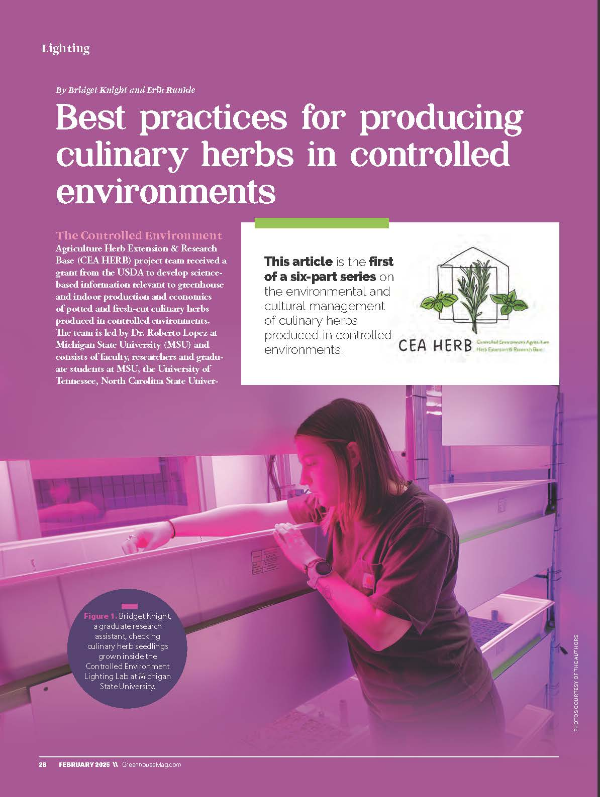 In the first of a series of articles on the production of culinary herbs, we delve into light quality to determine how the light spectrum can be manipulated to regulate growth and crop height of transplants grown indoors.