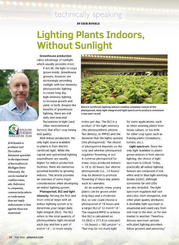 Although expensive, there are potential benefits to growing indoors. This article provides an overview of some major considerations when developing an indoor lighting system.