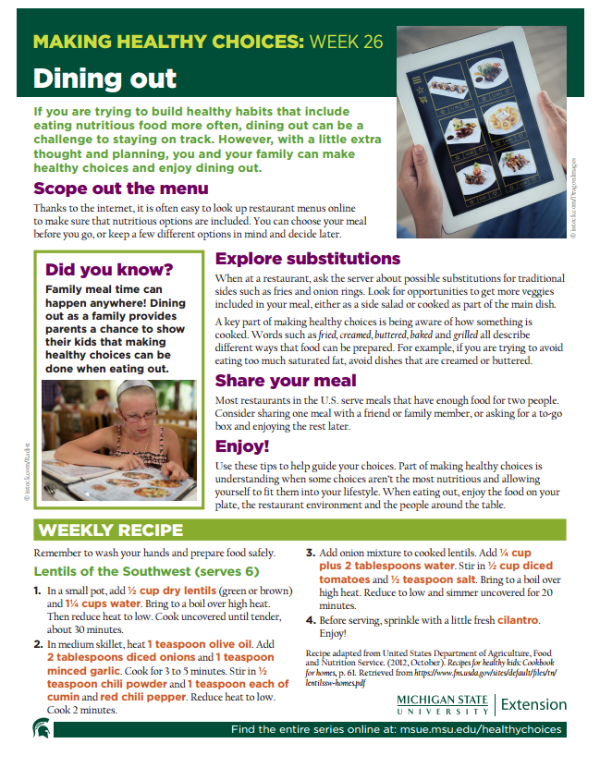 If you are trying to build healthy habits that include eating nutritious food more often, dining out can be a challenge to staying on track. However, with a little extra thought and planning, you and your family can make healthy choices and enjoy dining out