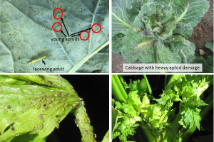 • Check 15-25 plants in each of the 10 locations, examining one leaf at the top, middle and bottom of the plant. Aphids tend to prefer to feed on the undersides of leaves
