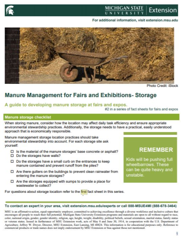 Temporarily stockpiling manure, a practice where manure is piled on the ground for limited amount of time outside of a storage facility, is an acceptable practice with appropriate management. The following points for this practice are outlined in the 2020 Michigan Generally Accepted Management Practices (GAAMPs):