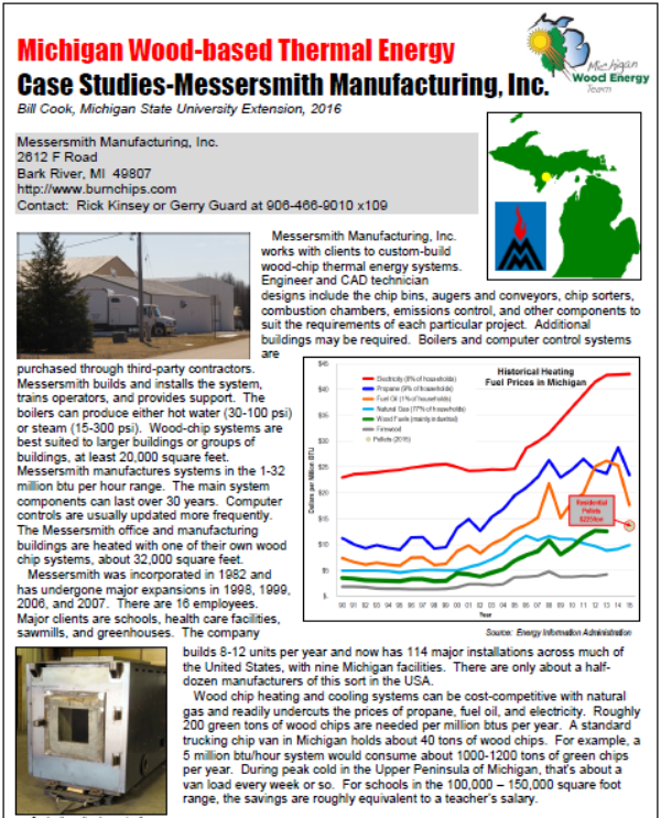 Messersmith is one of the nation’s leading manufacturers of wood chip heating systems. Engineer and CAD technician designs include the chip bins, augers and conveyors, chip sorters, combustion chambers, emissions control, and other components to suit the requirements of each particular project.