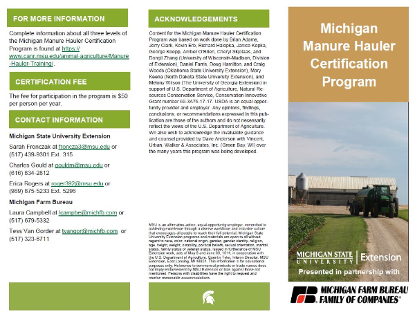 The goals of the Michigan Manure Hauler Certification Program are to: